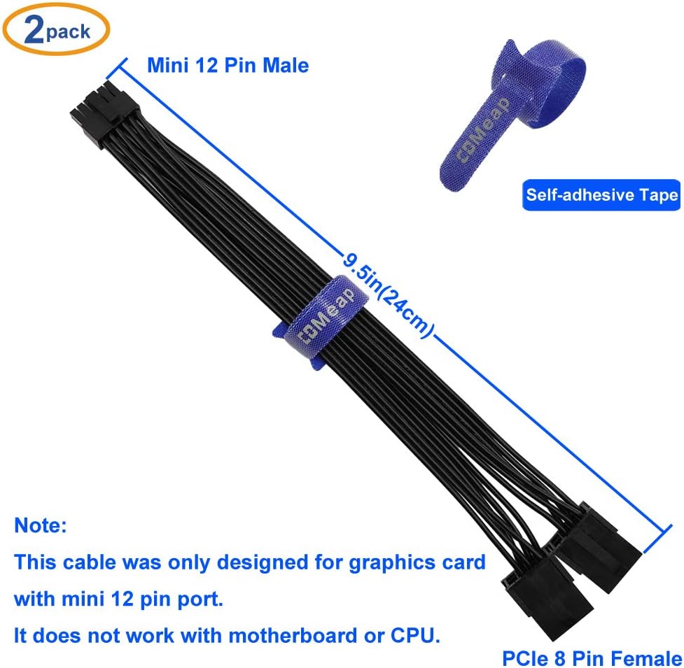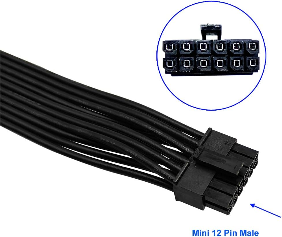 『12 Pin GPU Cable』Dual 8 pin female ends to plug into the power supply, 8 Pin male end to plug into the video graphics card;