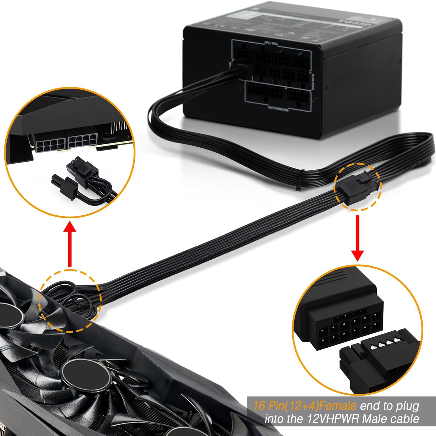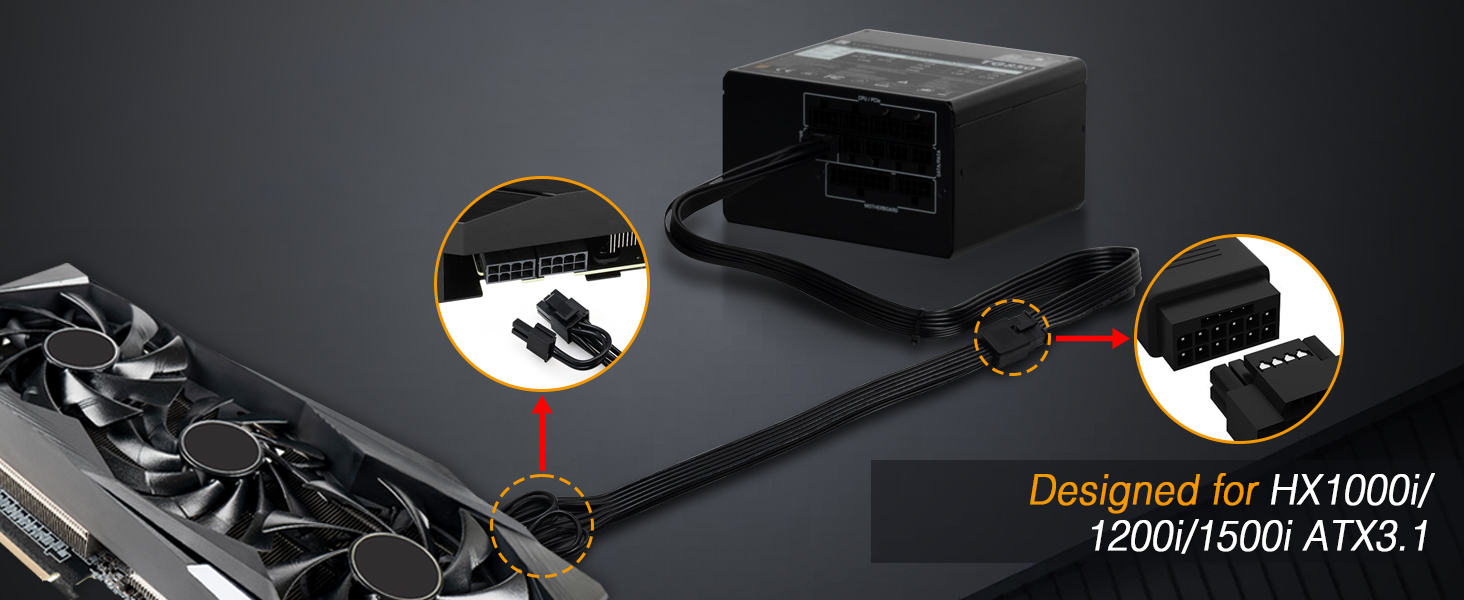 • Compatibility : Works with all PSUs which has original 12VHPWR output pcie cable, such as: for Seasonic CORE GX650/750/850 ATX3/ for Seasonic FOCUS GX750/GX850/GX1000 ATX3. For Corsair SF1000L/ TX1000/ 850/ 750 ATX3/ for Corsair HX1000i/1200i/1500i ATX3.1. For PHANTEKS AMP GH1000/ 850/ 750/ 650 ATX3.1.