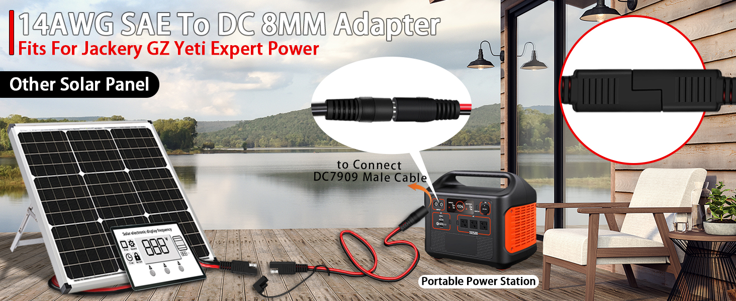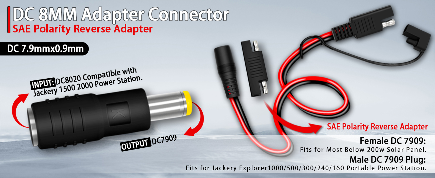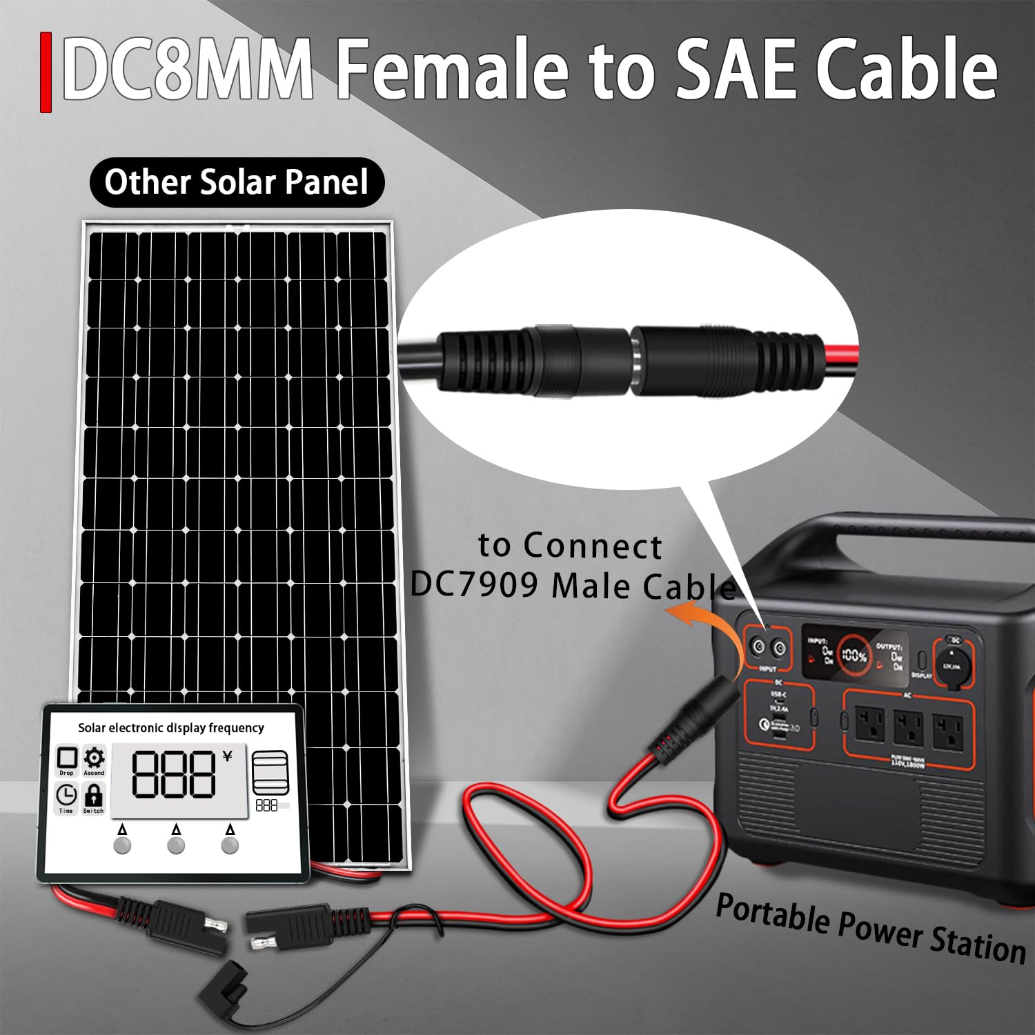 6FT 1.8M SAE to DC8mm Female Adapter for Jackery Solar Panel, with Polarity Reverse Adapter DC7909 to DC8020 Converter for Explorer Series/GZ Portable Power Station Solar Generator 14AWG