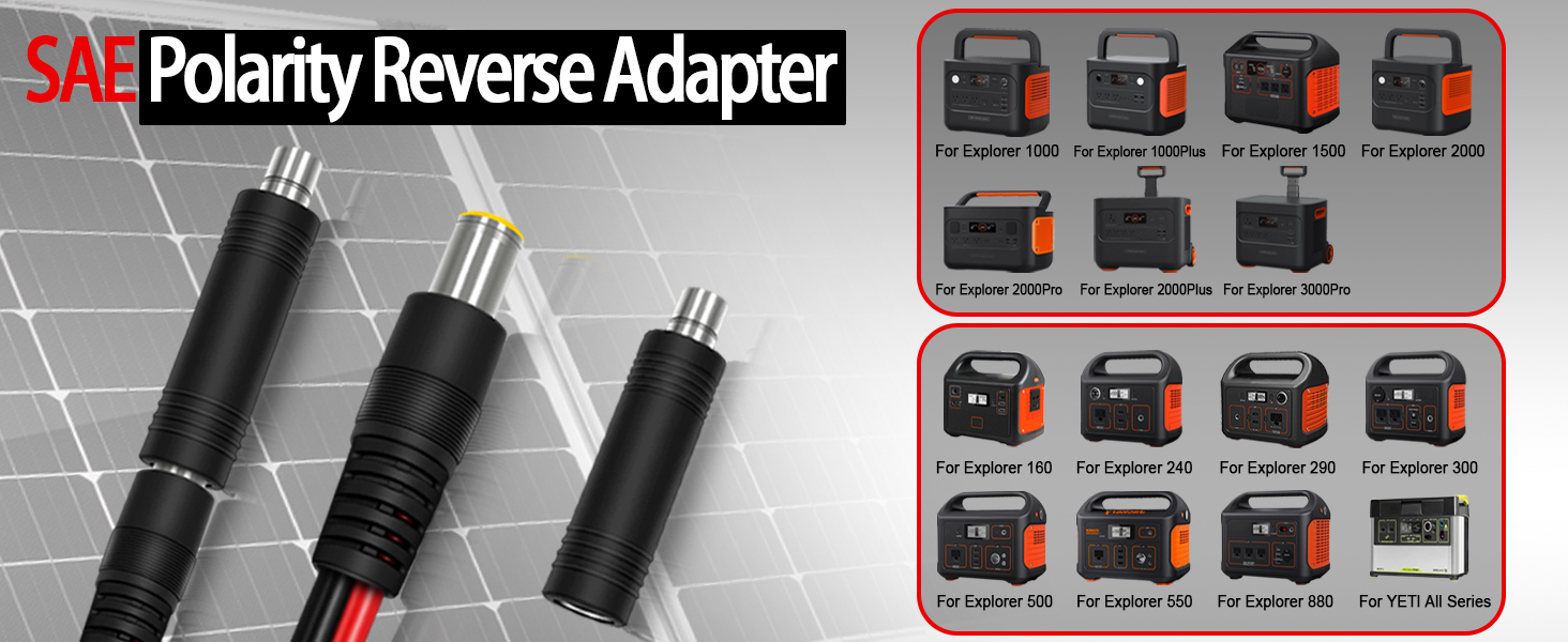 • 『SAE Polarity Reverse Adapter』Different brands of solar panel charger outlet connectors have different polarities, so you can switch the polarity with it whenever you want. Please make sure the polarity is correct before connecting.