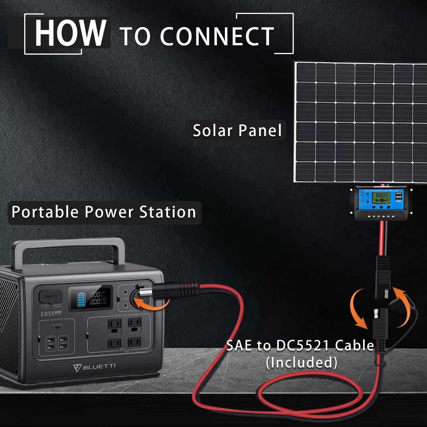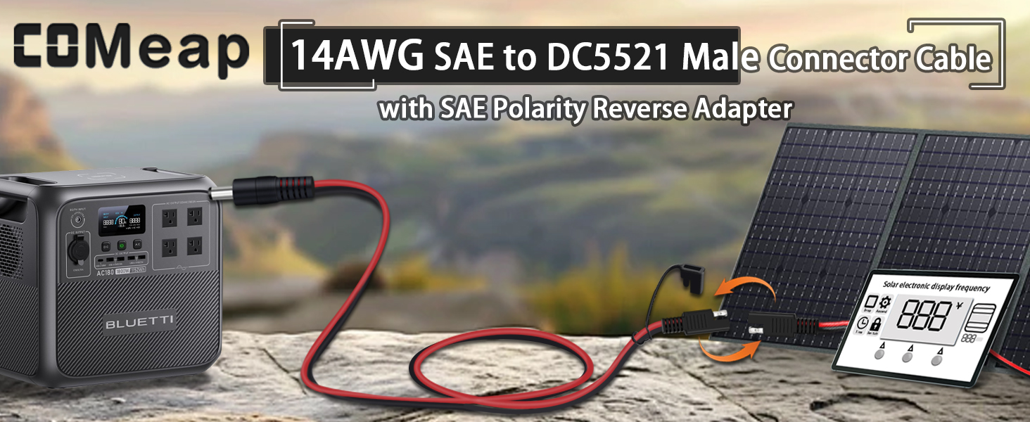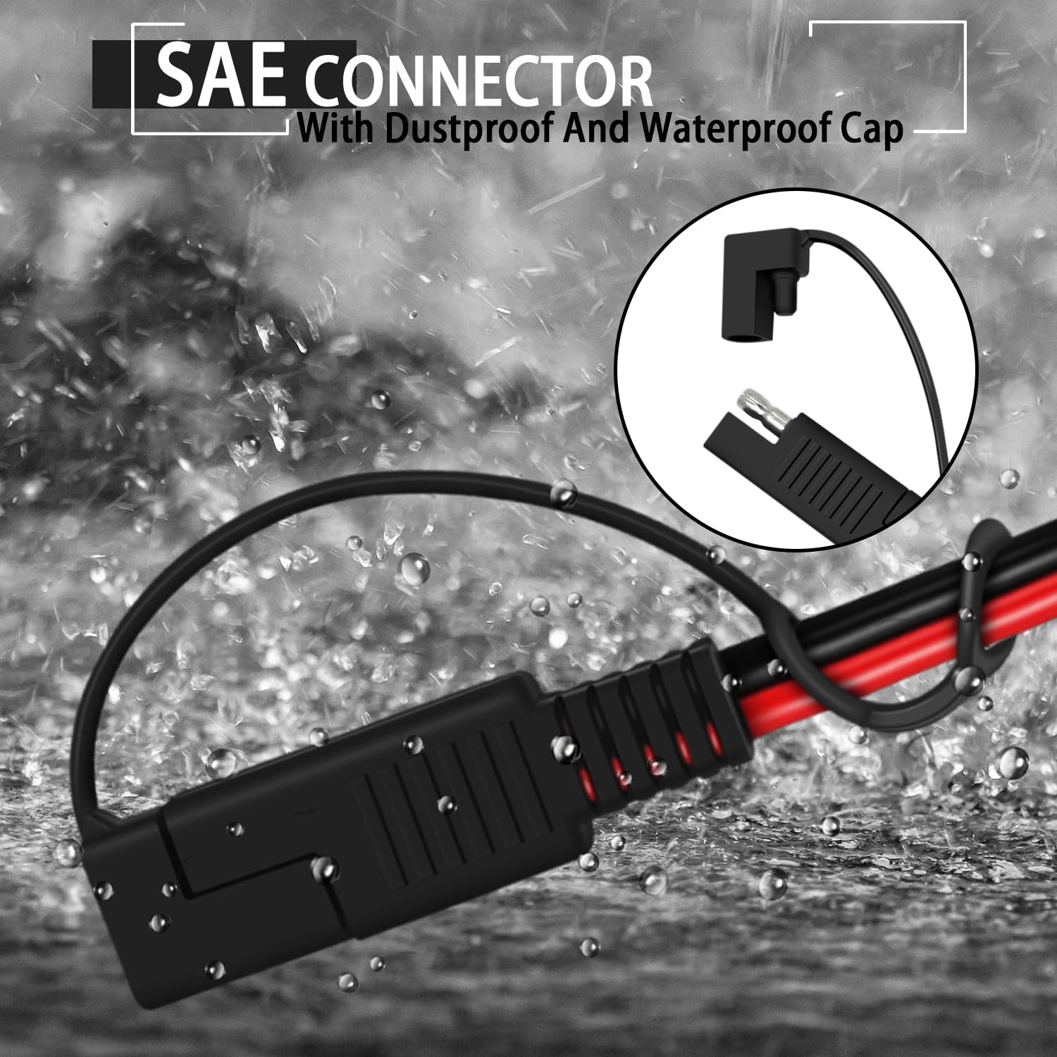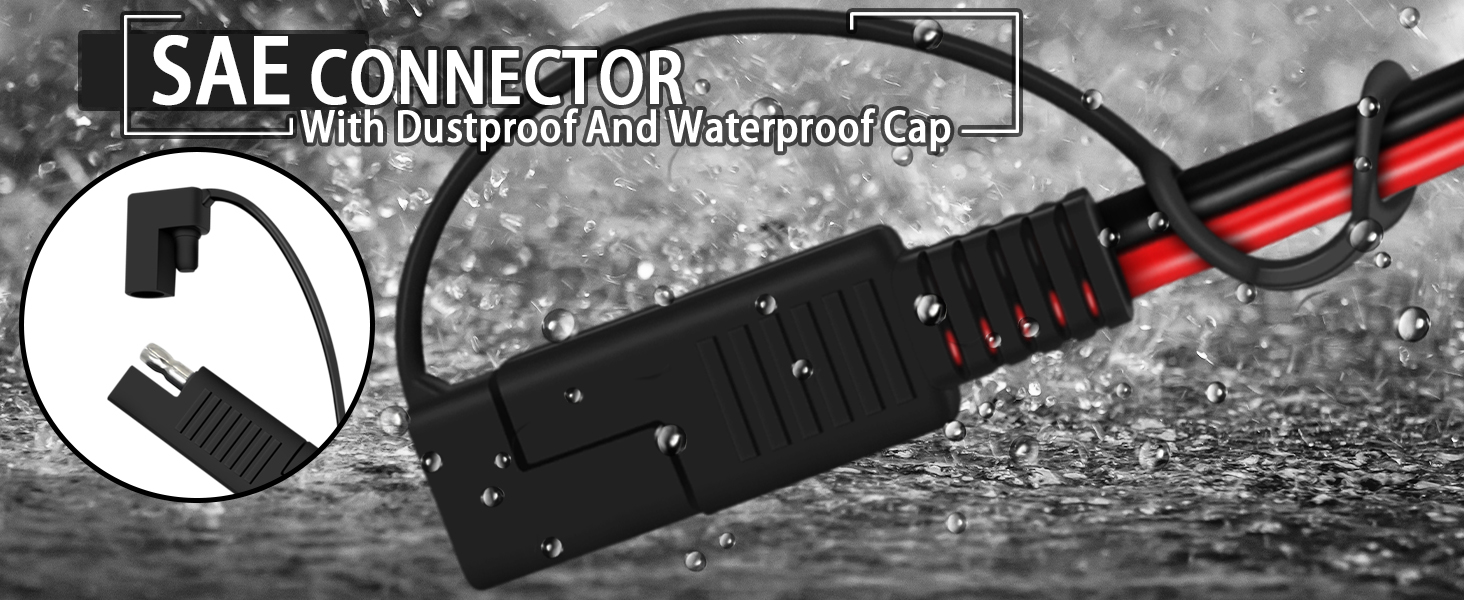 『SAE to DC Adapter』Be used to charge motorcycle battery via the SAE connection. The DC barrel male plug connects directly to solar panel without any additional adapter which means not losing or leaving a small critical part behind.