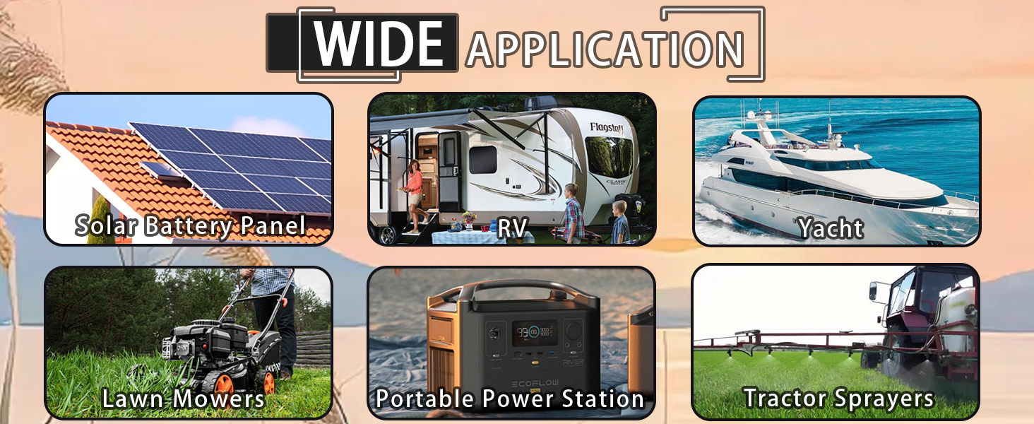 『Wide range of use』It can widely used in a variety of solar battery panel and vehicles, such as motorcycles, lawn mowers, ATV, RV, troll motors, tractor sprayers, inverters and other equipment you want to charge.
