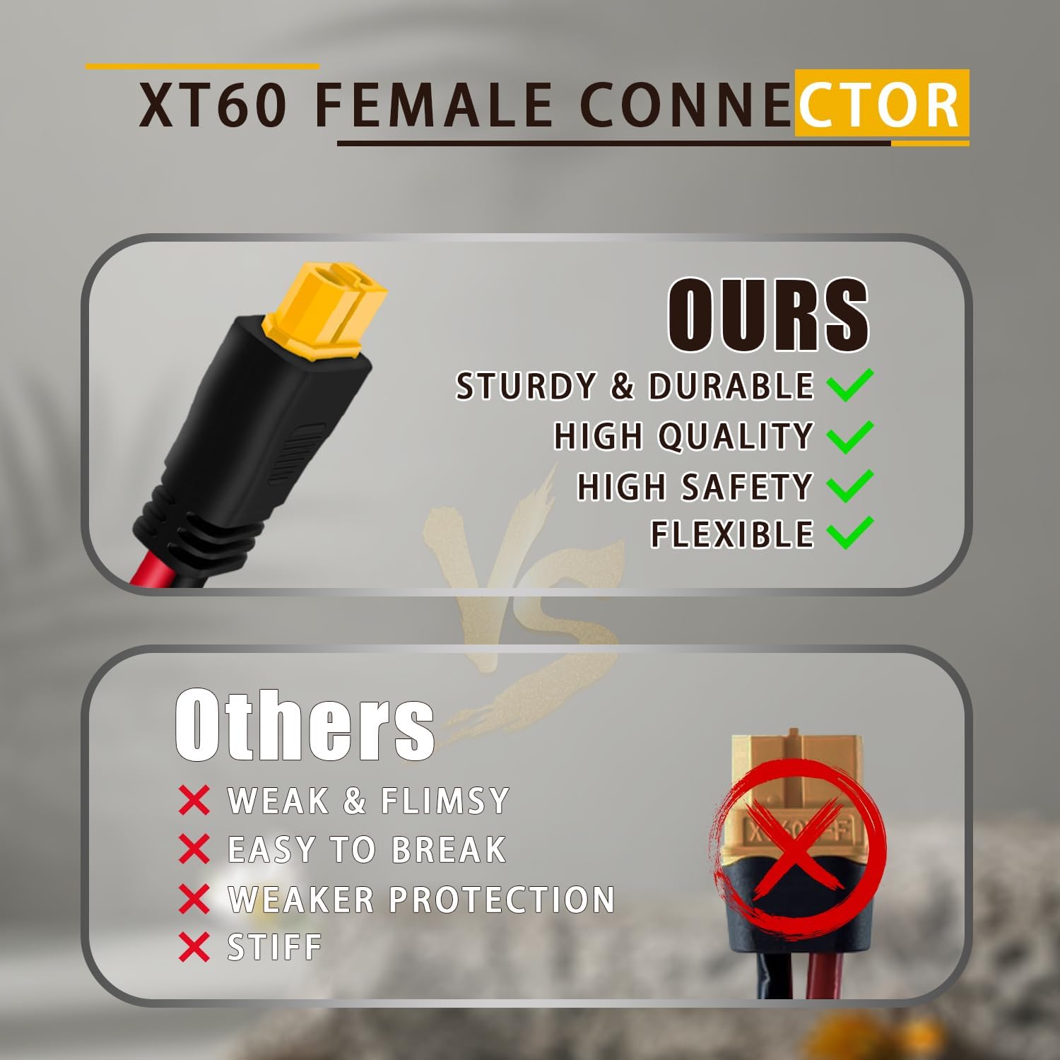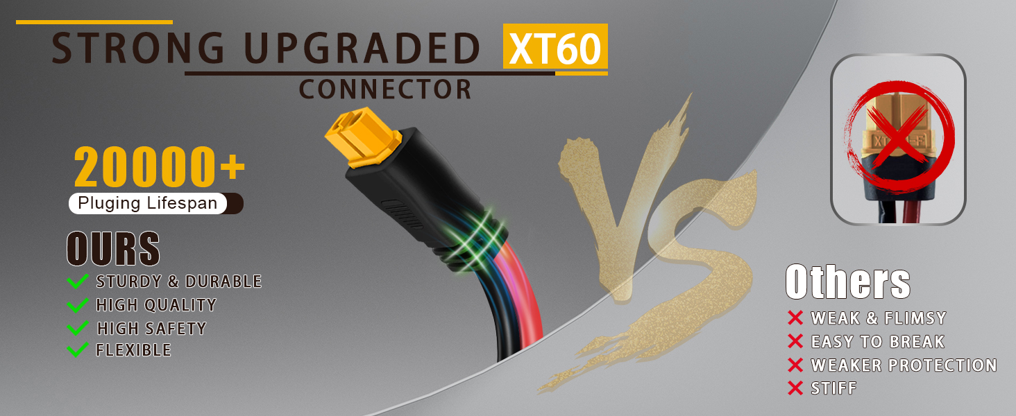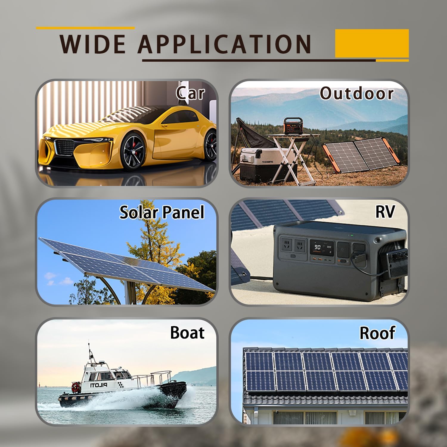 • 『10AWG Solar Panel to XT60 Adapter』The heavy-duty M-C-4 to xt60 adapter charging cable uses 10AWG tinned copper wire to provide stable current for your devices, which can minimize the power loss and improve charging efficiency.