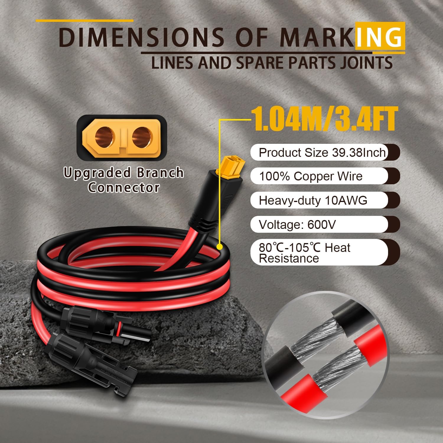 Solar Panel Cable for Ecoflow Anker SOLIX 10AWG, Compatible with MC-4 to XT60 Plug Solar Panel Connector Adapter Extension for Portable Power Station Solar Generator RV 3.4ft(1.04m)