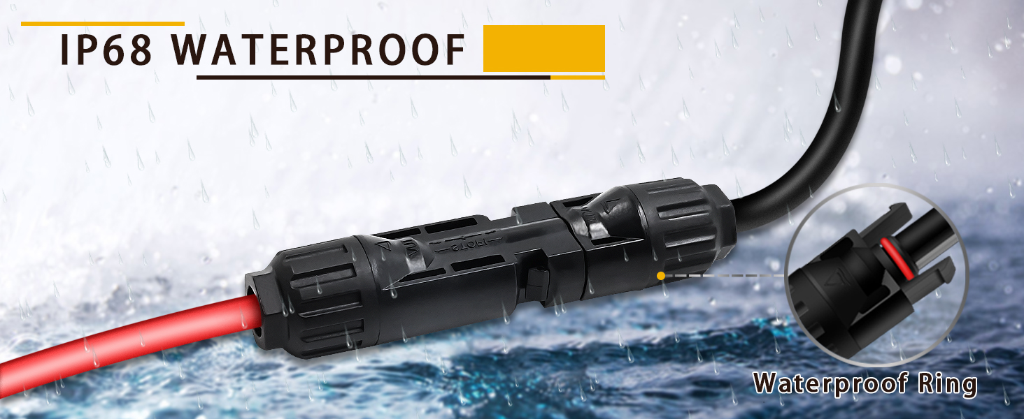 • 『IP68 Solar Panel Connectors』CE and TUV certified, IP68 waterproof rating, UL94-V0 flame retardant rating, durable in outdoor environments. The double sealing ring design improves the waterproof and dustproof performance to prevent corrosion, which also increases the feasibility of the solar panel extension cable to be used in bad weather such as rain, snow, and strong wind.