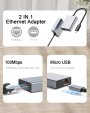 Ethernet Adapter for Fire TV Stick, Micro USB to RJ45 Ethernet Adapter Compatible with Fire TV Stick/4K/4K Max, Cube, Chromecast Ultra Audio - Grey