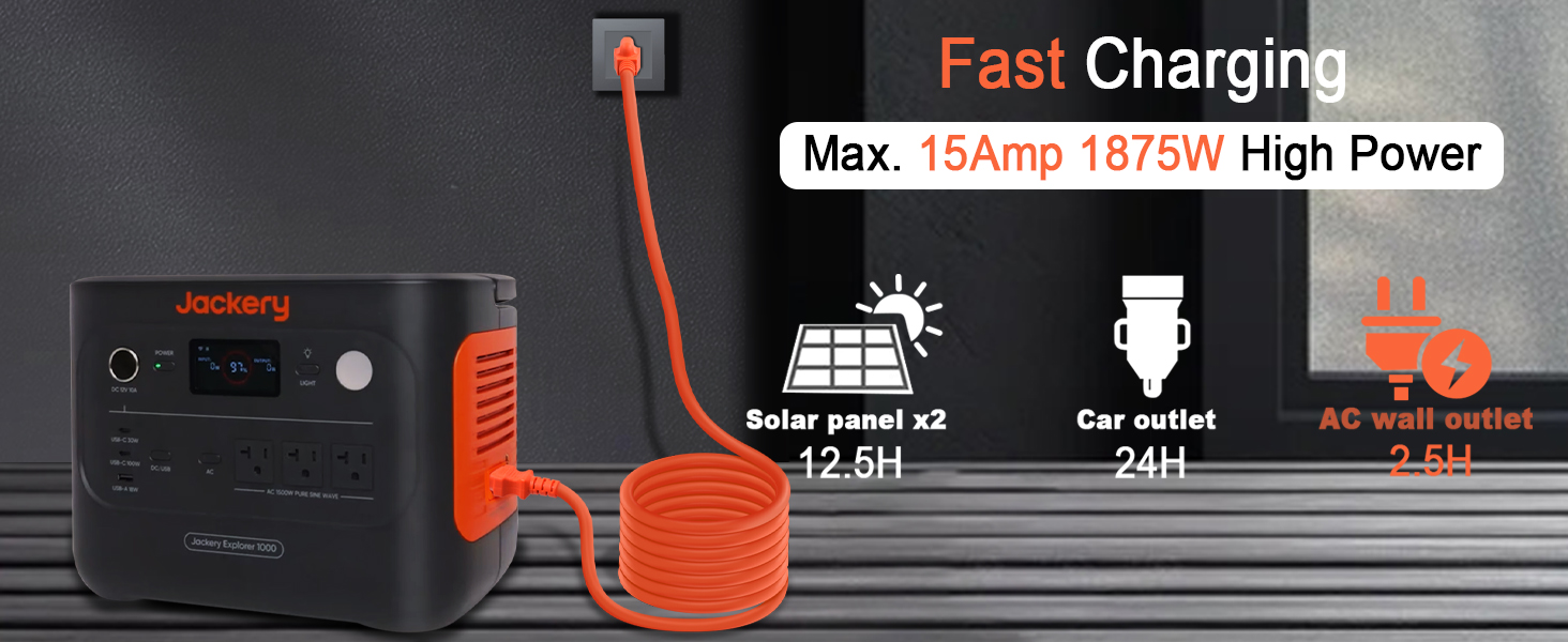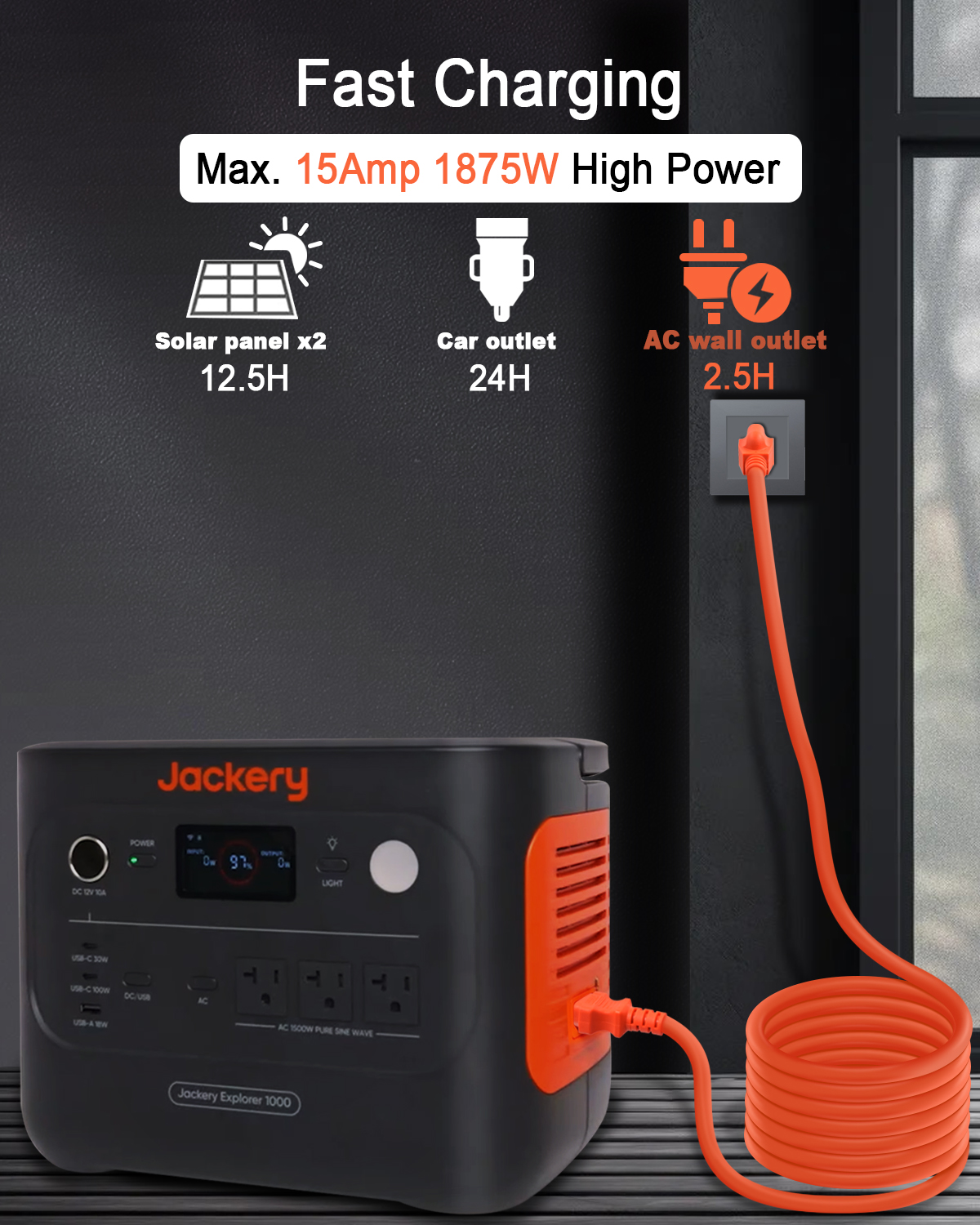 - Fast Charging Cable - Universal AC charging cable for Jackery/Ecoflow/Bluetti/Anker/power station, etc. It has low resistance and high conductivity, shortening charging time and improving charging efficiency.