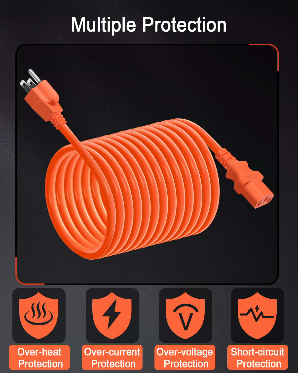 - 16.4 FT AC Power Cord - The bending test of the 3-prong AC power cord reached 100000+, and its length of 10 feet gives it high flexibility.