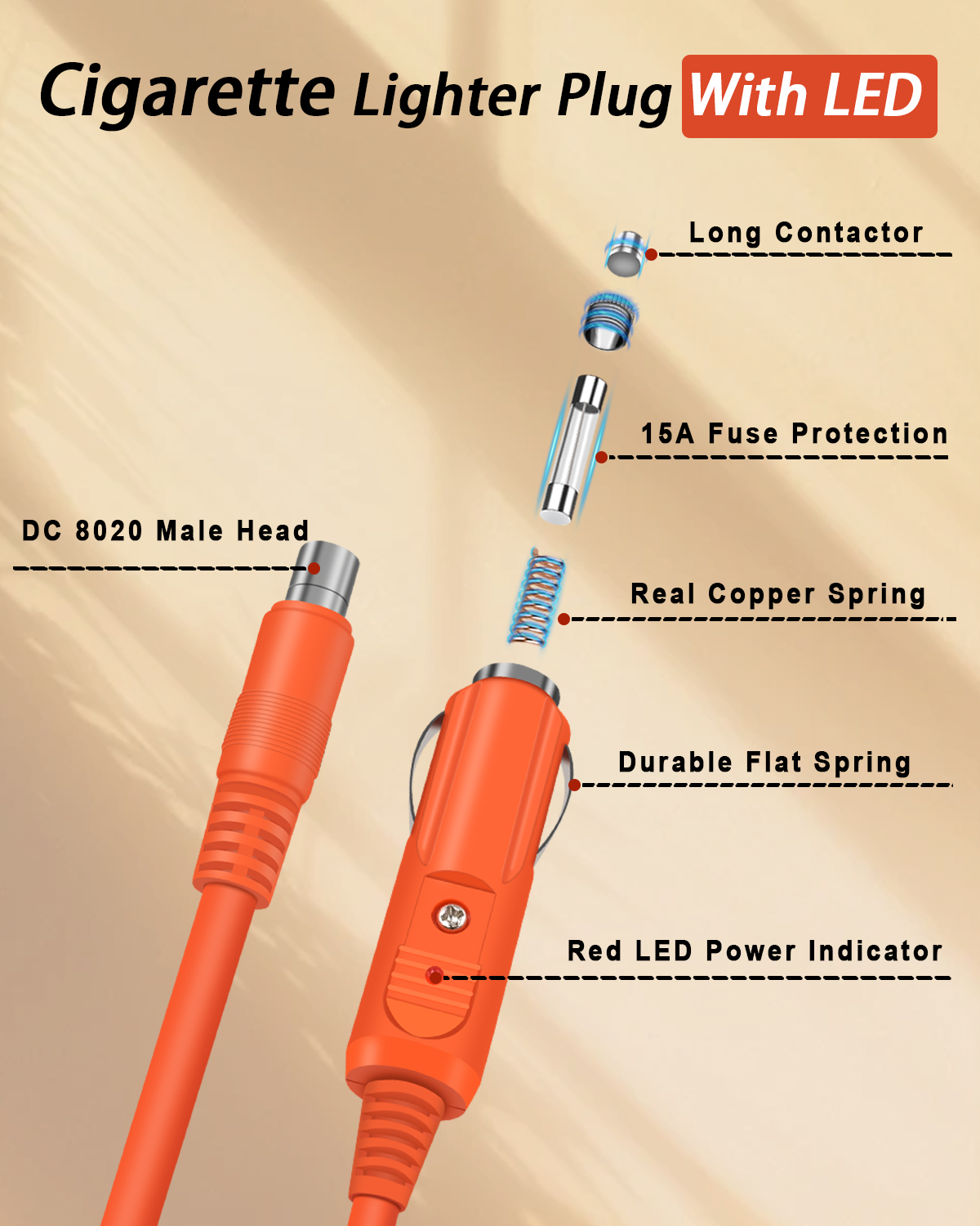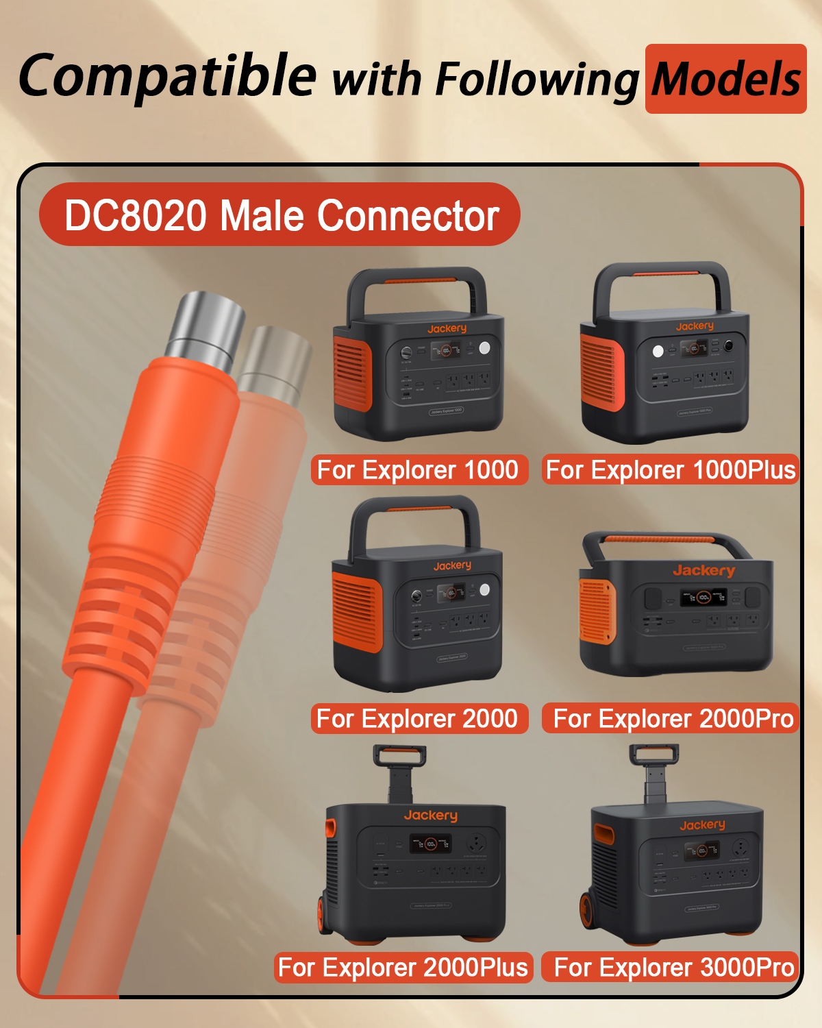 • Compatible Models - This cigarette lighter car charging cable compatible with Jackery Explorer 3000 Pro 2000 Plus 2000 Pro 2000 v2 2000 1500 Pro 1500 1000 Pro 1000 v2 1000 Portable Power Station and more other brands or models with DC 8020 input port portable power station.