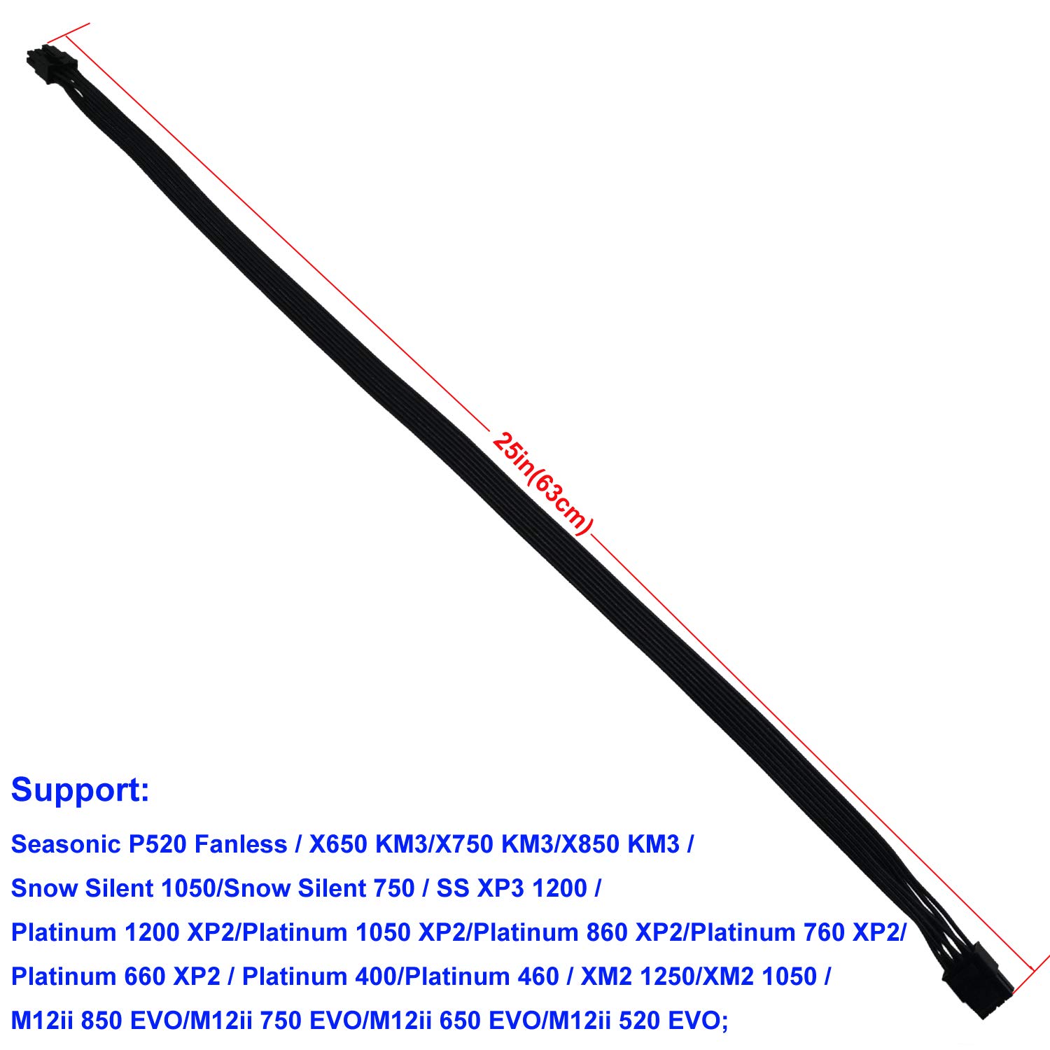 『Compatibility』Only compatible with some specific types of Seasonic fully modular power supply such as: P520 Fanless / X650 KM3/X750 KM3/X850 KM3 / Snow Silent 1050/Snow Silent 750 / SS XP3 1200 / Platinum 1200 XP2/Platinum 1050 XP2/Platinum 860 XP2/Platinum 760 XP2/Platinum 660 XP2 / Platinum 400/Platinum 460 / XM2 1250/XM2 1050 / M12ii 850 EVO/M12ii 750 EVO/M12ii 650 EVO/M12ii 520 EVO SSR-550FX/650FX/750FX/850FX/1000FX;