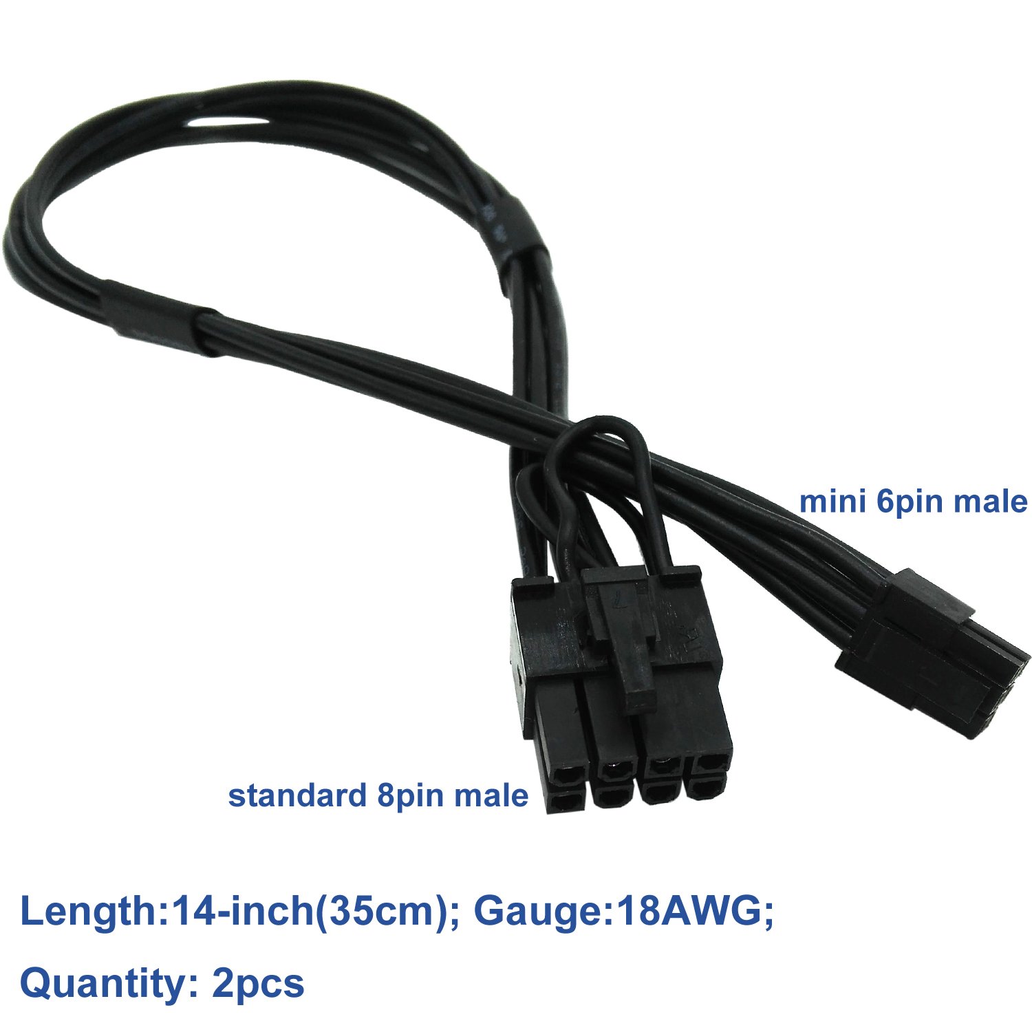 『Mini 6P - PCIe 8P』Mini 6 pin male end to plug into the Mac motherboard (NOTE: the end is mini 6 pin, not stanard 6 pin size.), PCIe 8 pin male end to plug into the video graphics card;