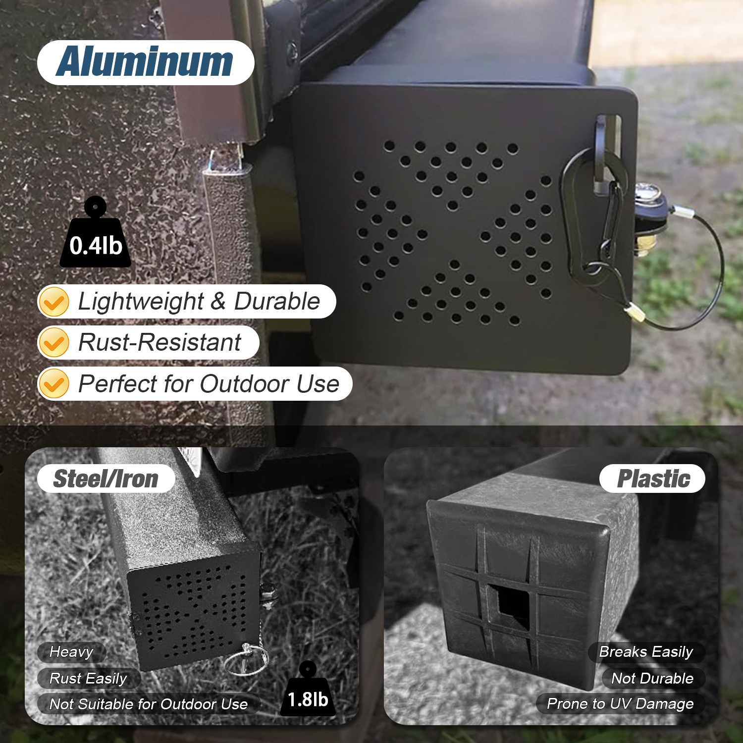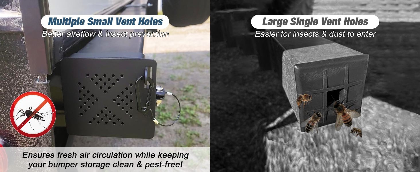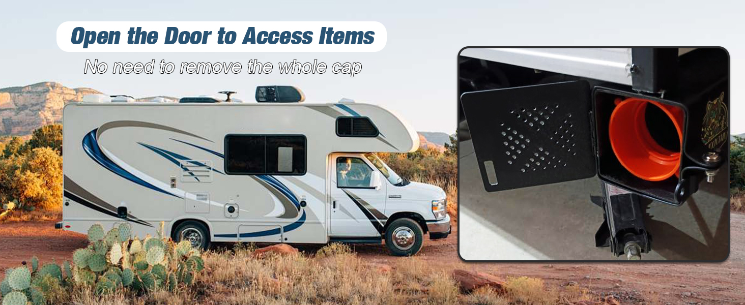 - Safeguard Essentials On-The-Go - Store sewer hoses, cords, and tools securely inside your RV bumper end cap with our heavy-duty aluminum design. No more worries about items falling out during bumpy travels or harsh weather.