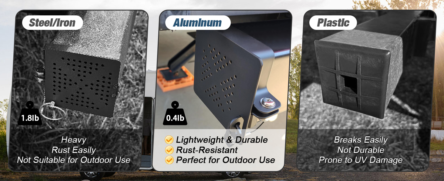 - Heavy-Duty Aluminum Build - Crafted from high-quality aluminum, this camper bumper end caps resists rust, corrosion, and UV damage. Outlasts plastic caps by 10x – guaranteed to protect your rv sewer cap and gear for years.