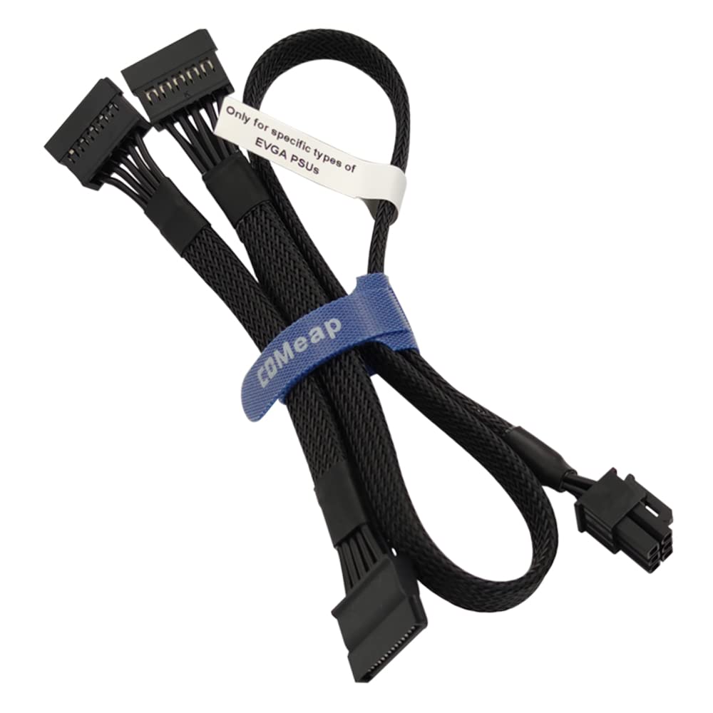 SATA Power Cable for EVGA PSUs, 6 Pin to 3X 15 Pin SATA Hard Drive Adapter Sleeved Splitter for Some Specific Types of EVGA Power Supply 20-in(50cm)