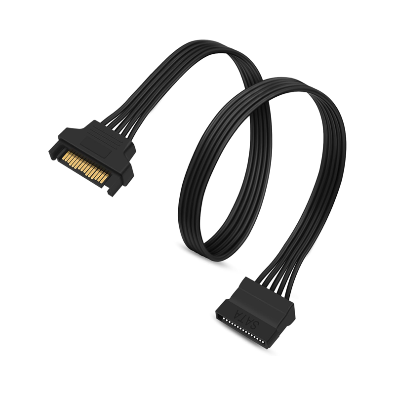 15 Pin SATA Power Extension Cable Male to Female Braided Adapter Black 24-inch(60CM)