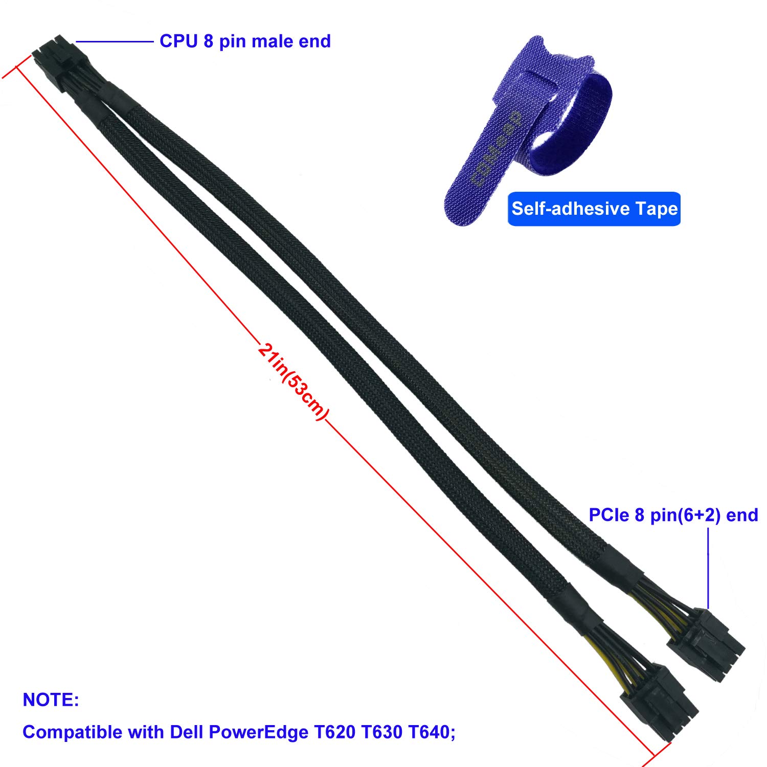 『CPU 8P - Dual 8P(6+2)』CPU 8 pin male end to plug into the power connector of Dell motherboard and two 8 pin(6+2) male ends to plug into the video graphics card (8 pin (6+2) end could be used as 6 pin or 8 pin end by sliding on/off the 2 pin);(Note: the CPU 8 pin end and two 8 pin(6+2) male ends cannot be used interchangeably.)