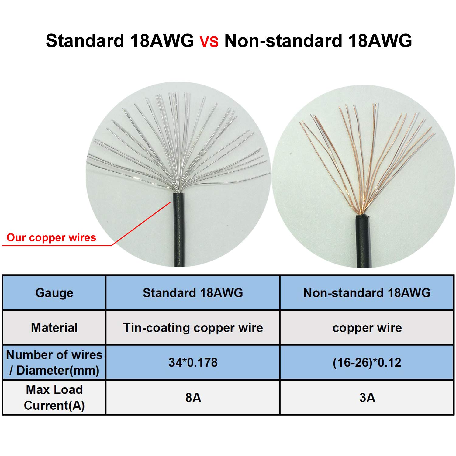 『Parameter』Length(including connectors): 21-inch(53m)(approx), Gauge: 1007-18AWG(standard tin-coating copper wire), Maximum power: 1200W, Self-adhesive tape*1pcs;