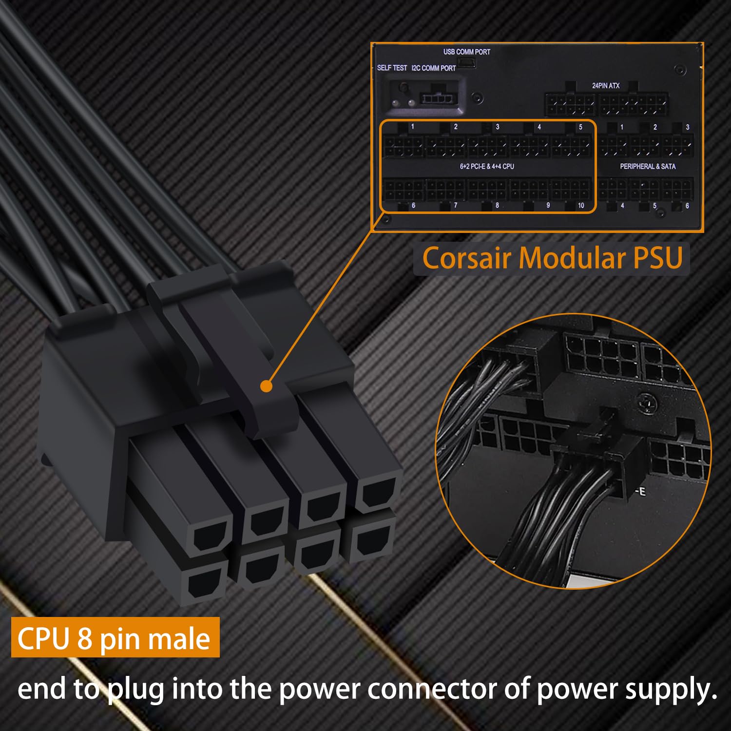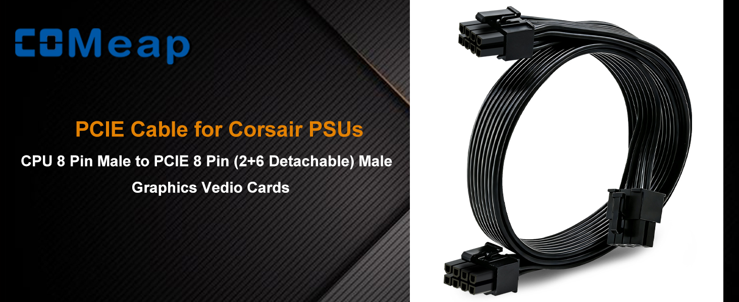 PCIe Cable for Corsair, ATX CPU 8 Pin Male to Dual PCIe 8 Pin (6+2) Male Power Cable for Corsair Thermaltake ARESGAME Power Supply 25-inch(63cm)