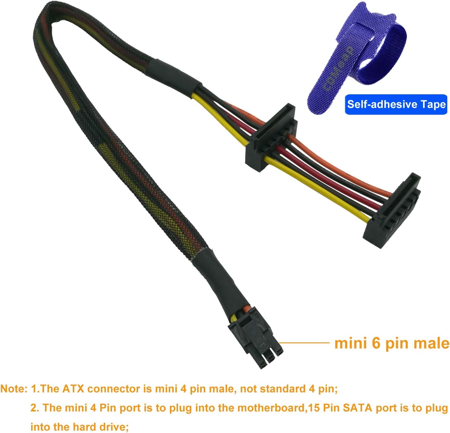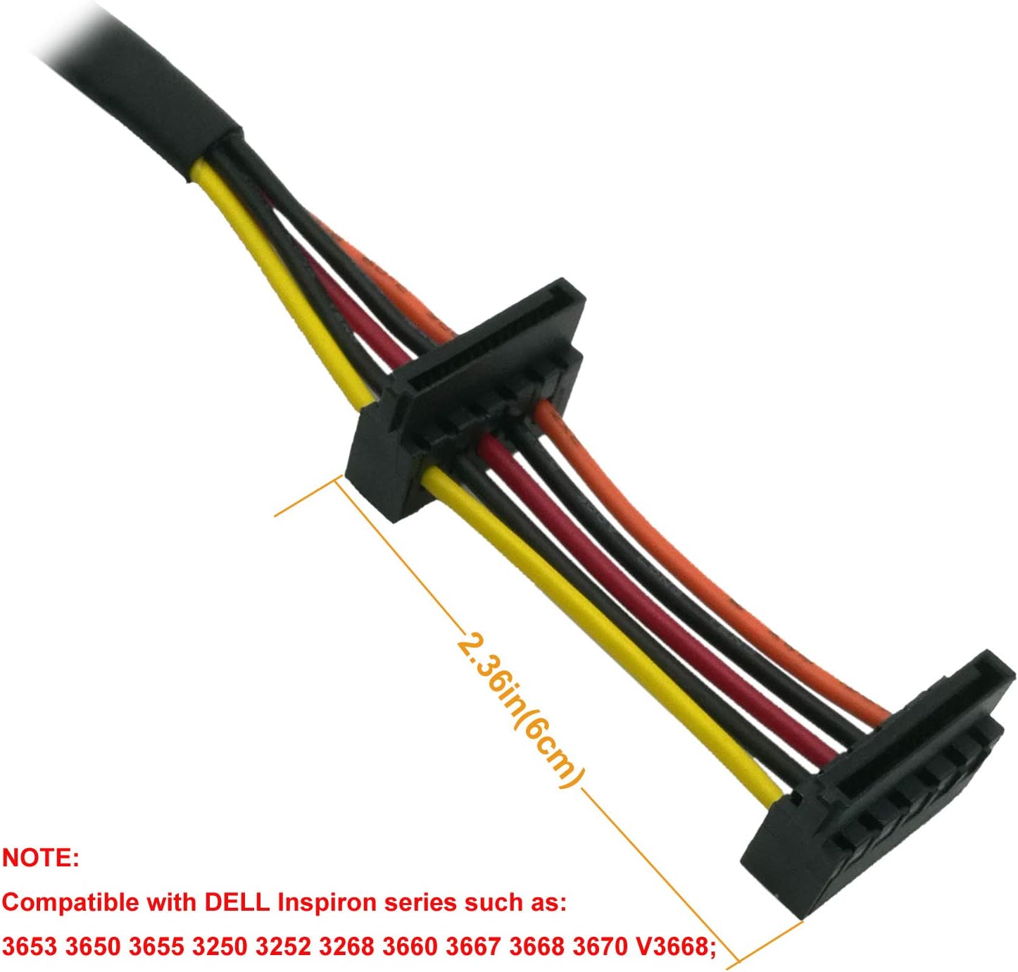 『SATA Power Cable for Dell Inspiron 3653 3650 Series』Mini 6 Pin port plugs into the motherboard ( NOTE: It is mini 6 pin port, not standard 6 pin port. ), 15 Pin SATA port plugs into the hard drive;