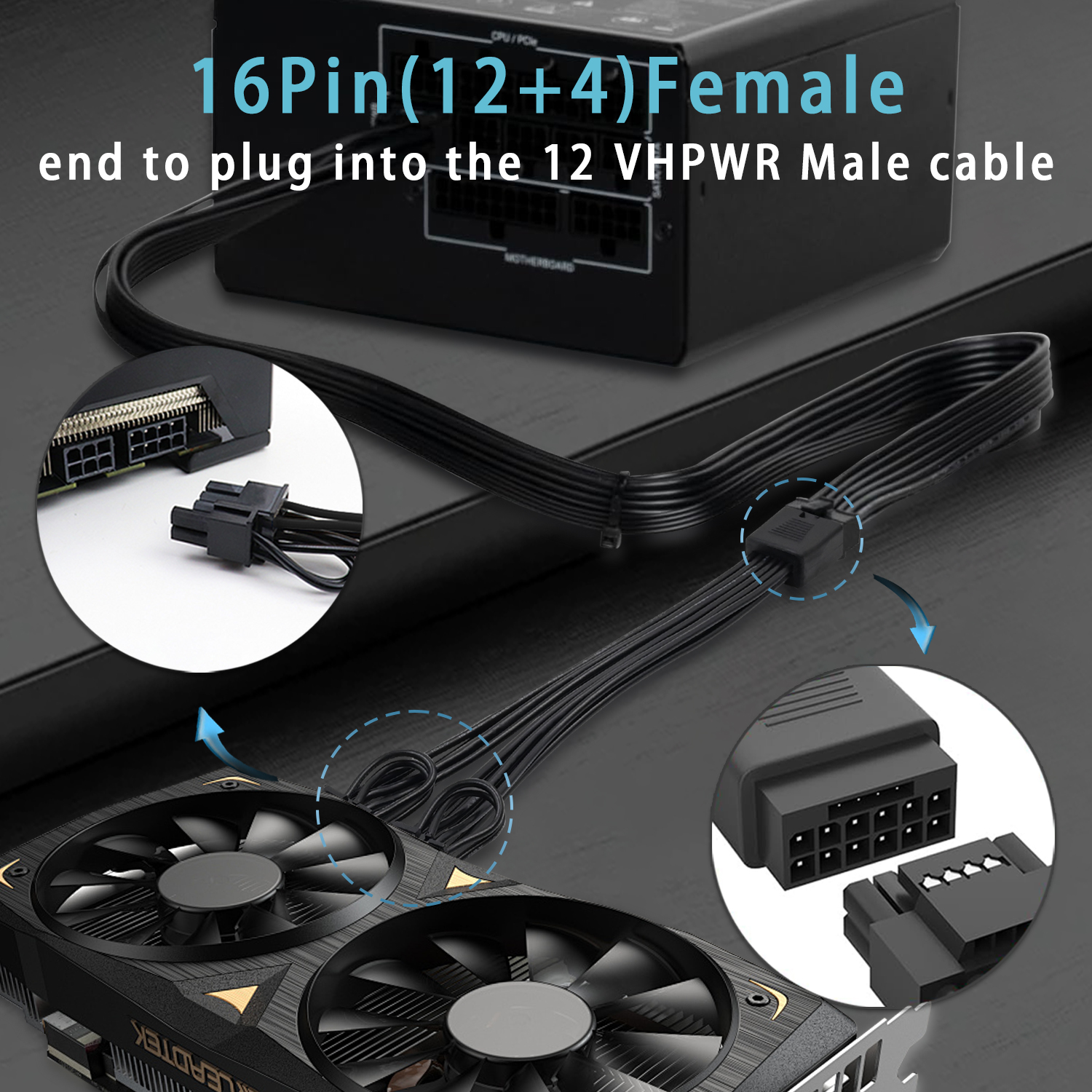 『12VHPWR Cable Extension』Designed for converting 16pin(12+4) port to dual 8pin(6+2) male port;