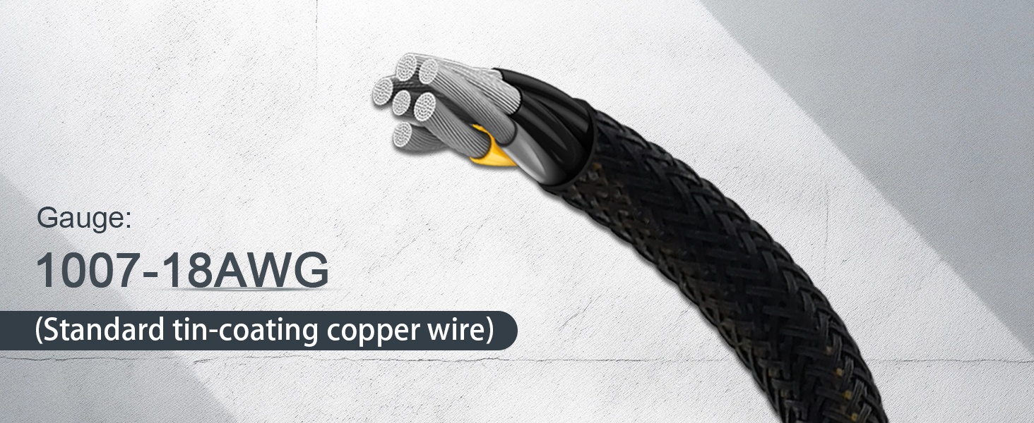 『Parameter』Gauge: 1007-18AWG (standard tin-coating copper wire), Length(including the connectors):13.3inches(34cm)(approx), Maximum power: 1000 watts, Quantity: 1pcs, Self-adhesive tape*1pcs;