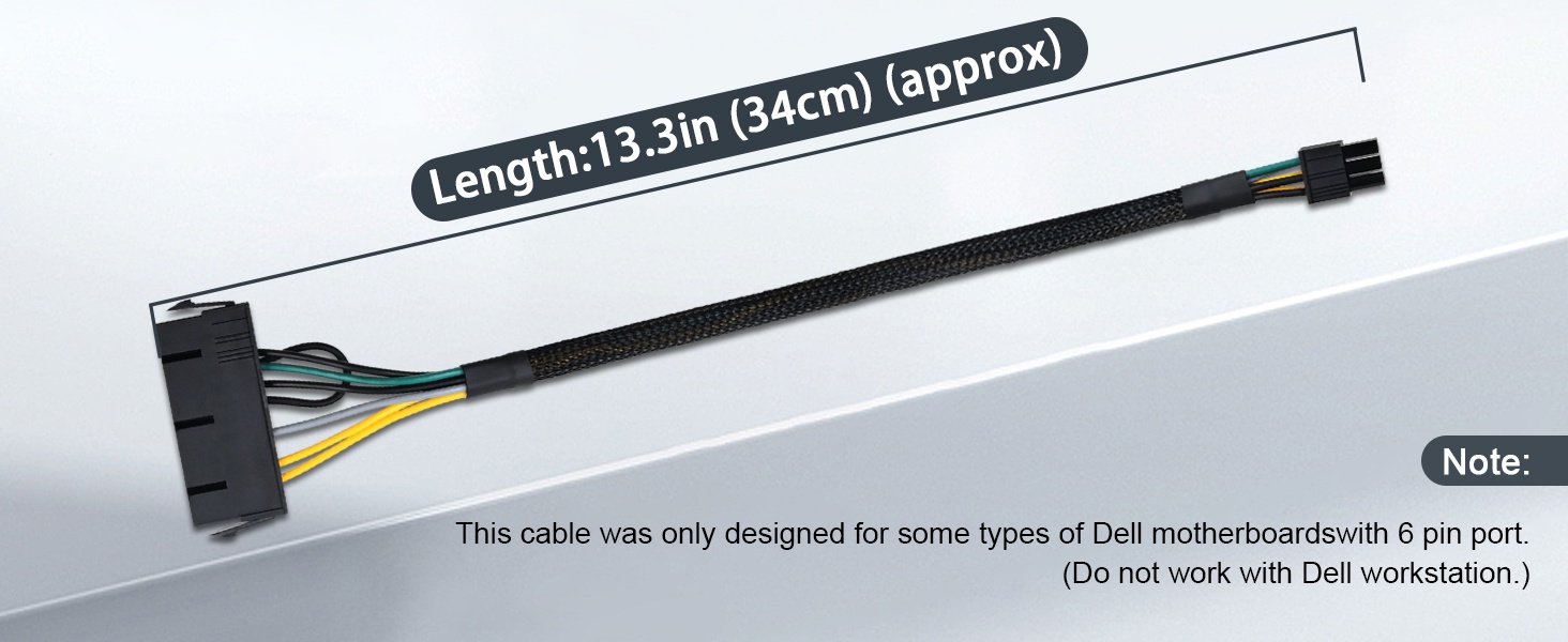 『Solution』Allowing you to convert standard 24 pin ATX power supply to 6 pin Dell motherboard power supply connector(Note: When to connect it with Dell motherboards, the power supply will still be on even if you turn off your computer. Only if you unplug the power cable, the power supply just stop working and the fan will stop spining.);