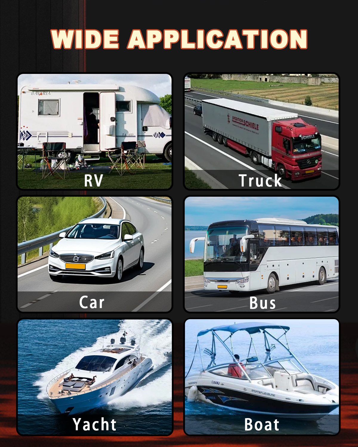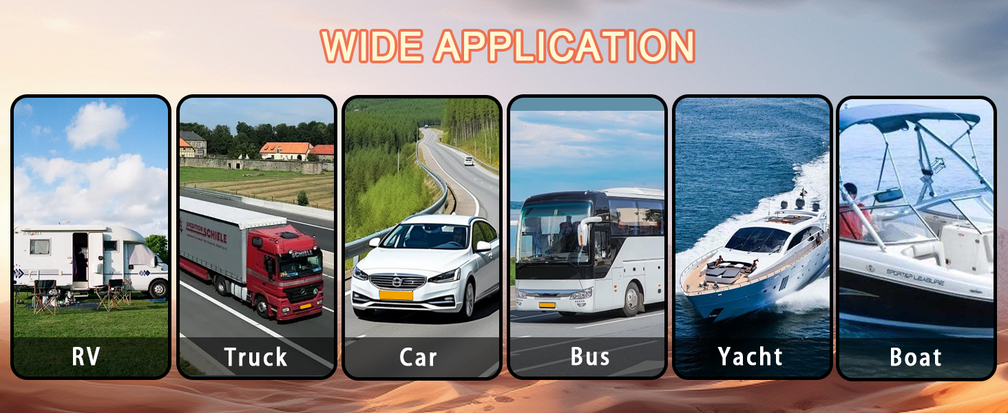 - Widely Used - It can be compatible with most vehicles with a voltage from 12V DC. Widely used in cars, trucks, motorhomes, buses, off-road vehicles, ATVs, vans, etc. (NOTE: Only Suit for 12V/10A Lead-acid Battery, NOT APPLICABLE TO ELECTRIC CAR.)