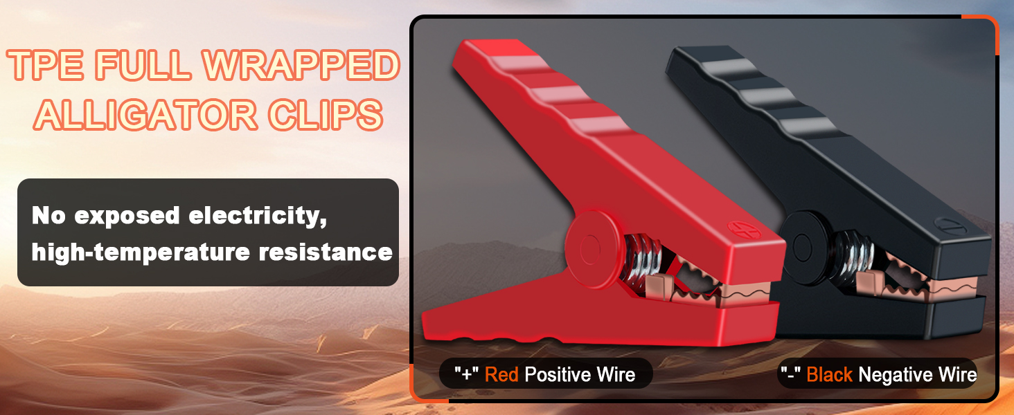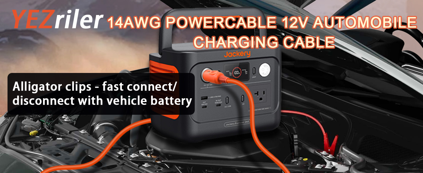 - Alligator Clip Plug Charger - Our car charging cable for Jackery portable power station is equipped with alligator clips, The alligator clip has a sturdy and heat-resistant handle with excellent insulation and firm grip, which will not loosen. Double-sided welding and screw mechanical fixation ensure optimal conductivity and safe use. It is very suitable for charging Jackery portable power station.