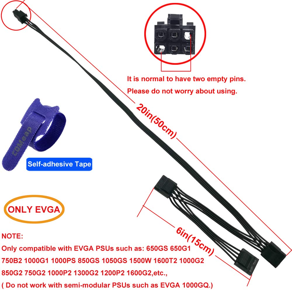 『Molex Power Cable for EVGA PSUs』Compatible with EVGA modular PSUs including G1/G1+/G2/G3/G5/GS/GA/GM, B2/B2/BQ, P2/T2, SuperNOVA nex650g/ 450GM/550GM;(Note: Do not work with 1000PS/850GS/1050GS and semi modular power supply such as EVGA GQ series including: 650GQ/750GQ/850GQ/1000GQ.)